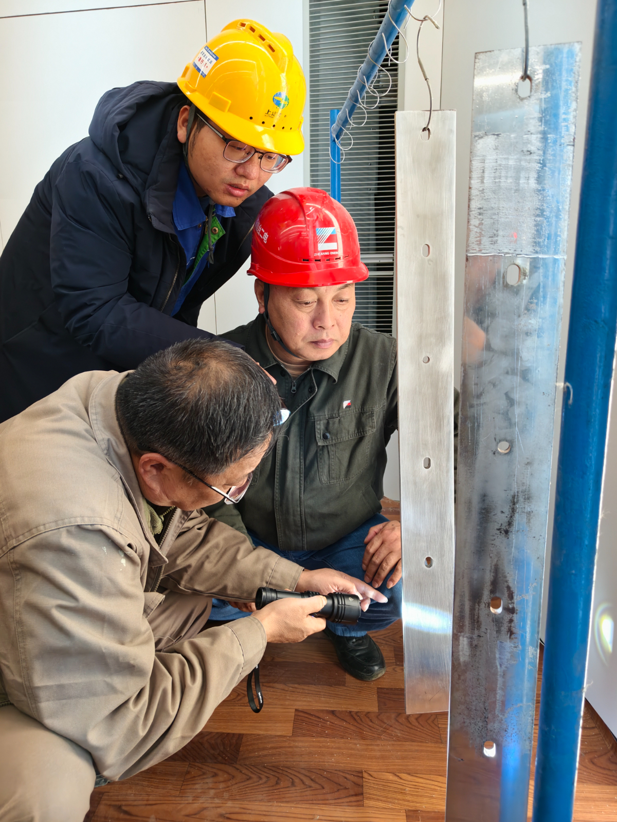 浙能台二电专业人员检查靶板品质。 刘凯锐 摄