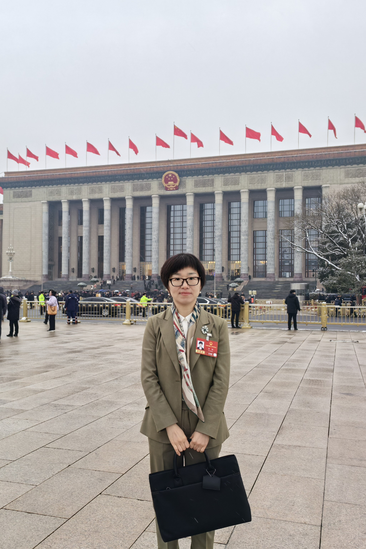 王洁代表在北京人民大会堂前。 王洁 提供
