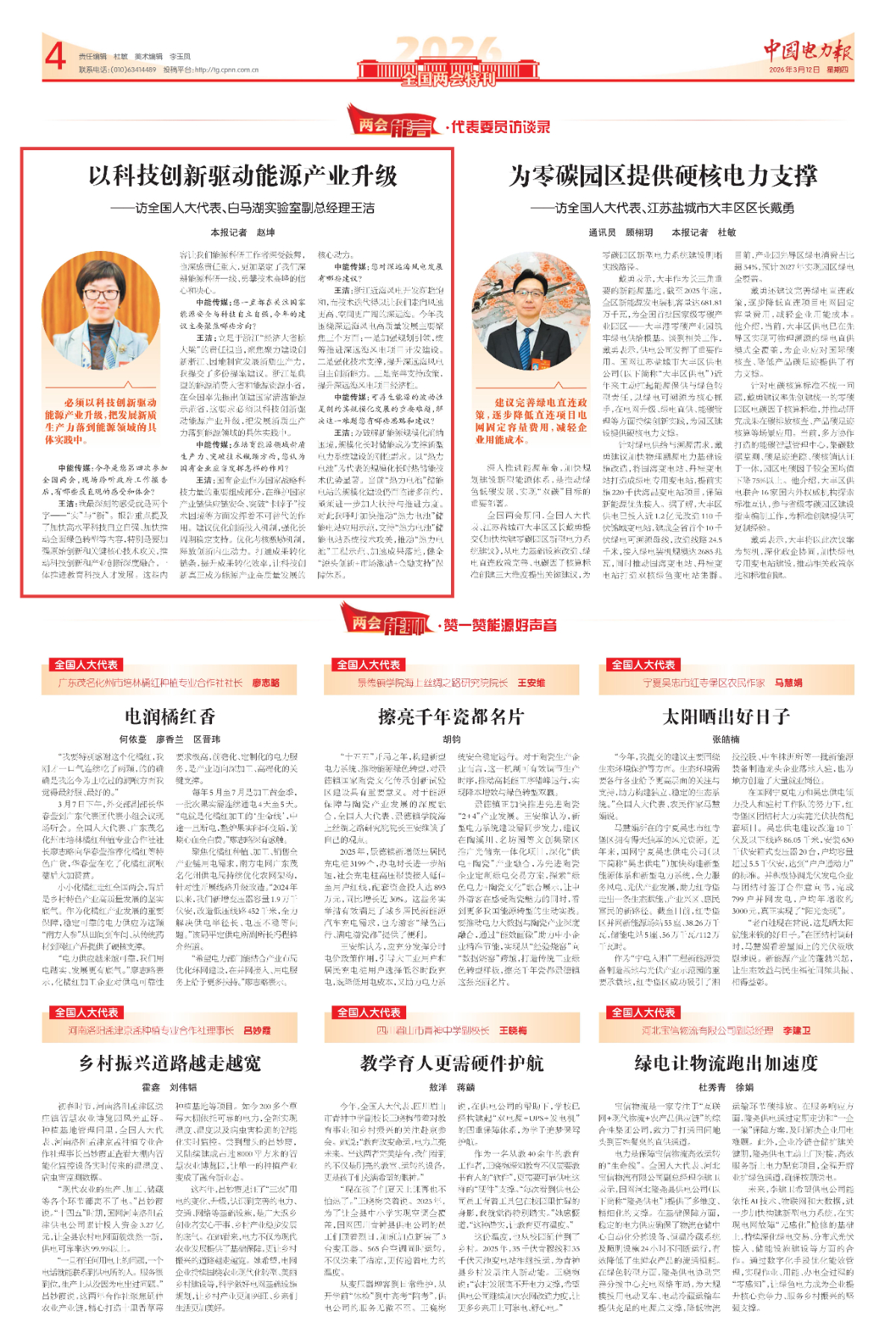 3月12日,《中国电力报》报道《以科技创新驱动能源产业升级——访全国人大代表、白马湖实验室副总经理王洁》。 《中国电力报》 图
