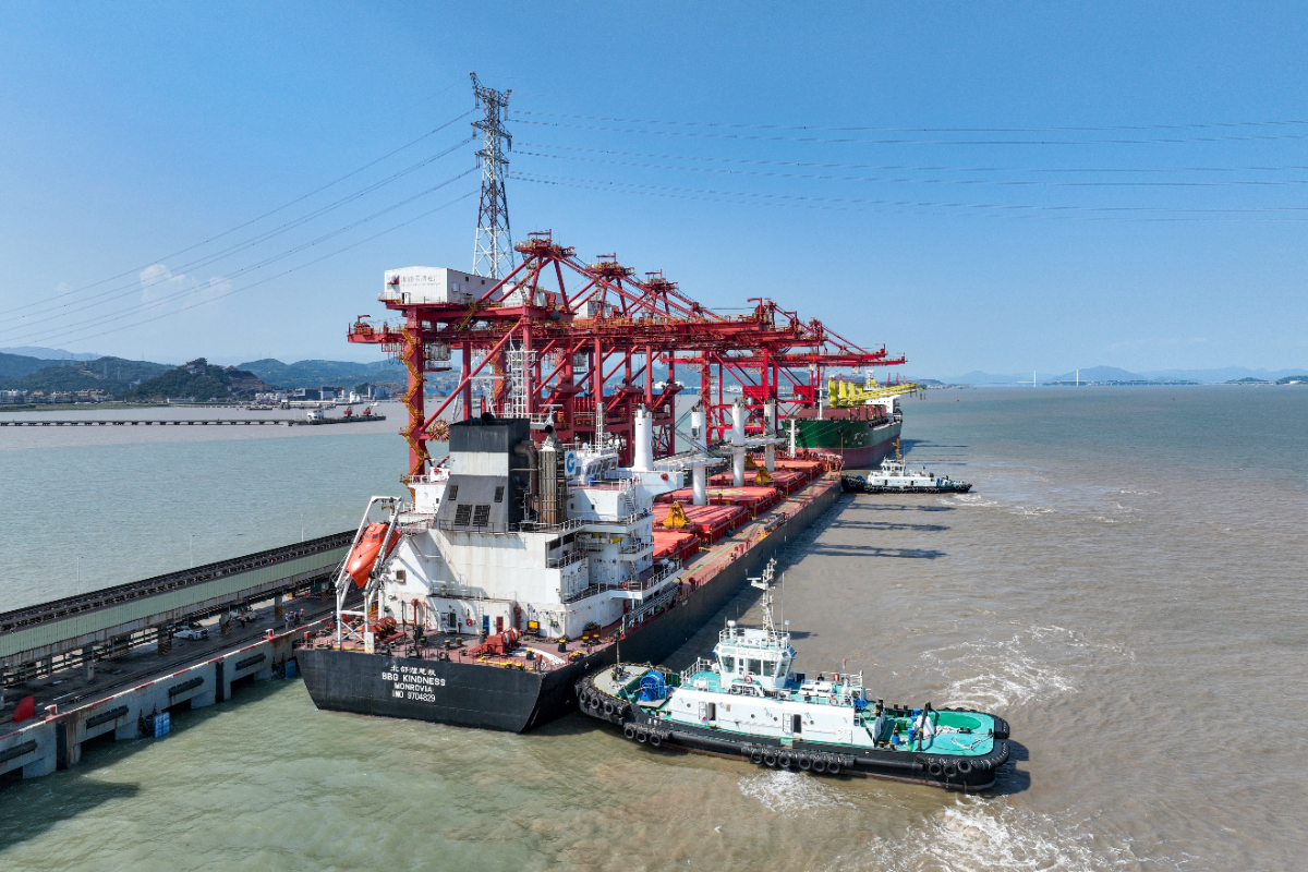 浙能集团首个海外煤矿项目首船煤炭靠泊乐电煤码头。 张立忠 摄