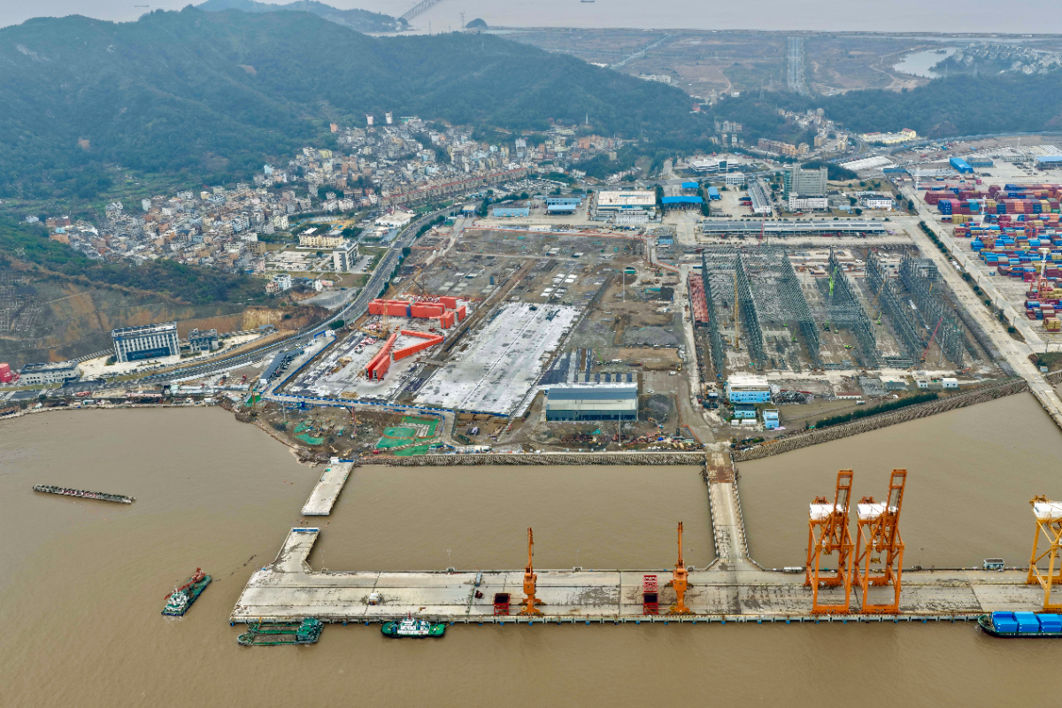 春日的温州海岸,海风正劲。走进浙江(华东)深远海风电母港(核心区)一期工程现场,吊车起落、机器轰鸣,正是一派热火朝天的施工景象。尤为引人注目的是一批巨型构件,在陆续运抵工地后,正由工作人员紧张而有序地开展拼装作业。