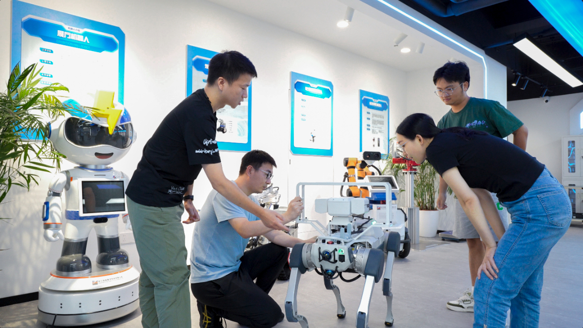 轮式巡检机器人、轨道巡检机器人、四足机器人、测温机器人、智能消防机器人、光伏清洗镀膜机器人……走进浙能数科的数字能源劳模(工匠)创新工作室,各色各样的机器人让人眼花缭乱。