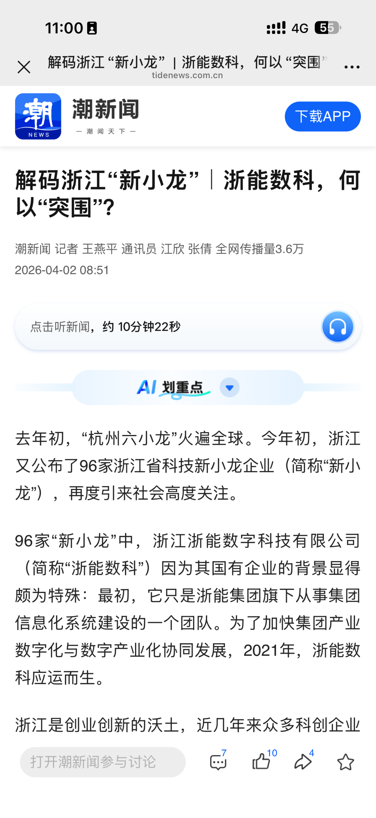 4月2日,潮新闻客户端报道《解码浙江“新小龙”|浙能数科,何以“突围”?》 浙能数科 提供